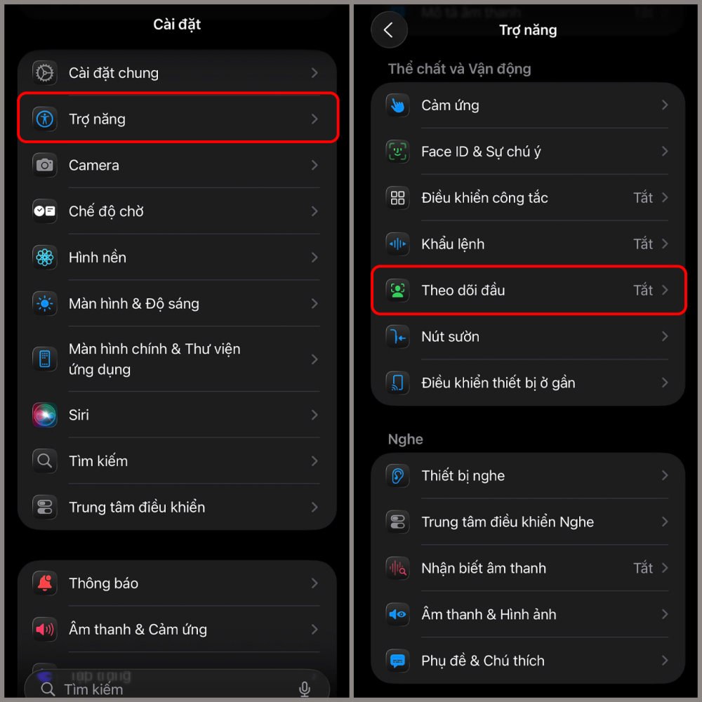 - Vào Cài đặt > Trợ năng > Theo dõi đầu.
